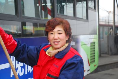 作為一名公交保潔員,她們的心很“凈”,如同擦洗過的車窗,熠熠生輝,如同清掃過的車廂,清澈潔凈,整潔優(yōu)美永遠(yuǎn)是她們的最高追求。公交車干凈了,她們的衣服臟了;車窗玻璃亮堂了,她們的手粗糙了;乘客滿意了,她們的臉曬黑了。
