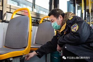 “細(xì)微之處見真章”?;榇箨?duì)要求線上車輛嚴(yán)格按照防疫流程,有效對乘客進(jìn)行實(shí)名登記、體溫測量的同時(shí),隊(duì)員們個(gè)個(gè)親力親為協(xié)助做好防疫消殺等工作。更有8人主動(dòng)請纓,復(fù)工初期幫118路保潔出4部運(yùn)營車輛,直干到深夜22:30才收工。無論早高峰站點(diǎn)值守、始發(fā)站乘客檢測體溫還是公交車清潔消毒,都能看到稽查隊(duì)員沖鋒在前的身影。