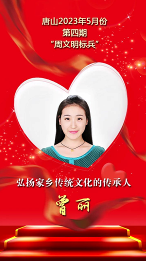 曾麗,樂亭縣文化廣電和旅游局文化服務(wù)中心職工、樂亭大鼓第八代傳人。她出身曲藝之家,自幼學(xué)習(xí)樂亭大鼓演唱,大學(xué)畢業(yè)后回到家鄉(xiāng)投身基層文化建設(shè),系統(tǒng)完整地繼承了樂亭大鼓多個(gè)曲目和長篇書《小八義》,表演有較強(qiáng)的藝術(shù)感染力。在創(chuàng)作上,她既能與流派一脈相承,又秉持守正創(chuàng)新和貼近實(shí)際、貼近生活、貼近群眾的創(chuàng)作理念,不斷謳歌時(shí)代英雄,寫身邊人、唱身邊事,創(chuàng)作了《大腳丫》《重溫紅燈記》《游樂亭》等作品,受到各界一致認(rèn)可。她每年參與線上、線下志愿服務(wù)慰問和公益演出近300場次,使樂亭大鼓藝術(shù)發(fā)展成為謳歌時(shí)代、研究民間倫理道德及社會(huì)關(guān)系的“百科全書”。