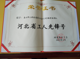 2023年4月28日,河北省總工會授予唐山公交總公司46路駕駛員翟澤明河北省五一勞動獎?wù)?,授予唐山公交總公?span style="padding:0px">2路營運(yùn)車隊(duì)河北省工人先鋒號。