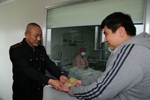 帶著一份祝福,一份愛心,3月20日下午,唐山公交二公司職工來到華北理工附屬醫(yī)院血液科,為勇于救母的九歲小女孩的白血病母親劉玲送來了1200多元的捐款。