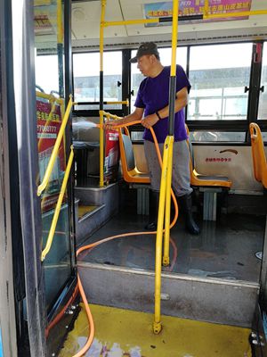 下午,路隊和分公司管理人員都來到路線,同保潔員一起清潔車廂內(nèi)外,清理衛(wèi)生死角。