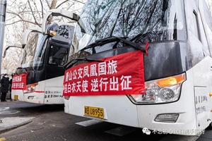 “您好!您是要去邢臺(tái)的醫(yī)務(wù)人員吧?我們先將行李幫您搬上大巴車,外面冷,您坐車?yán)锱汀?rdquo;1月14日中午,唐山公交公司鳳凰國際旅行社安排2輛大巴和相關(guān)工作人員到唐山市市政府門前,等候從各縣區(qū)趕來的醫(yī)務(wù)工作者。為了順利保障此次護(hù)送任務(wù),唐山公交選派了4名技術(shù)能力過硬、責(zé)任心強(qiáng)且具有奉獻(xiàn)精神的駕駛員出征。為圓滿完成此次任務(wù),公司提前做好全面預(yù)防性消殺和人員防疫安全工作,為車輛和駕駛員配備了測溫槍、消毒劑和充足的防護(hù)口罩,并囑咐他們要勤更換,從方方面面確保駕乘人員安全。