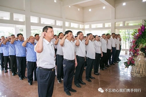 當天早上7:40參加此次活動的同志驅(qū)車一個多小時來到樂亭縣,懷著崇敬之情走進李大釗紀念館。“革命先驅(qū)李大釗英魂永存”,全體黨員首先向李大釗塑像敬獻花籃,黨委書記夏保良上前捋平花籃上的緞帶,并帶領(lǐng)全體黨員行鞠躬禮。在黨委工作部部長周群的帶領(lǐng)下,全體黨員莊嚴宣誓,在錚錚誓言中堅定理想信念、牢記初心使命。
