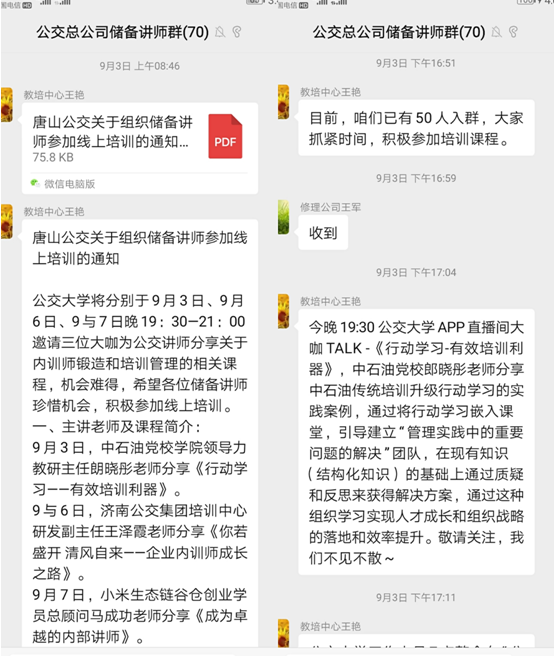結(jié)合當(dāng)前疫情防控形勢及總公司儲備講師培養(yǎng)需求,總公司教培中心積極轉(zhuǎn)變工作思路,多次與公交大學(xué)及公交同行對接,經(jīng)過前期精心籌備,分別于9月3日、9月6日、9月7日晚19:30-21:00組織總公司儲備講師參加了公交大學(xué)關(guān)于“講師技術(shù)和講師成長”相關(guān)的三場免費在線直播培訓(xùn)課程。